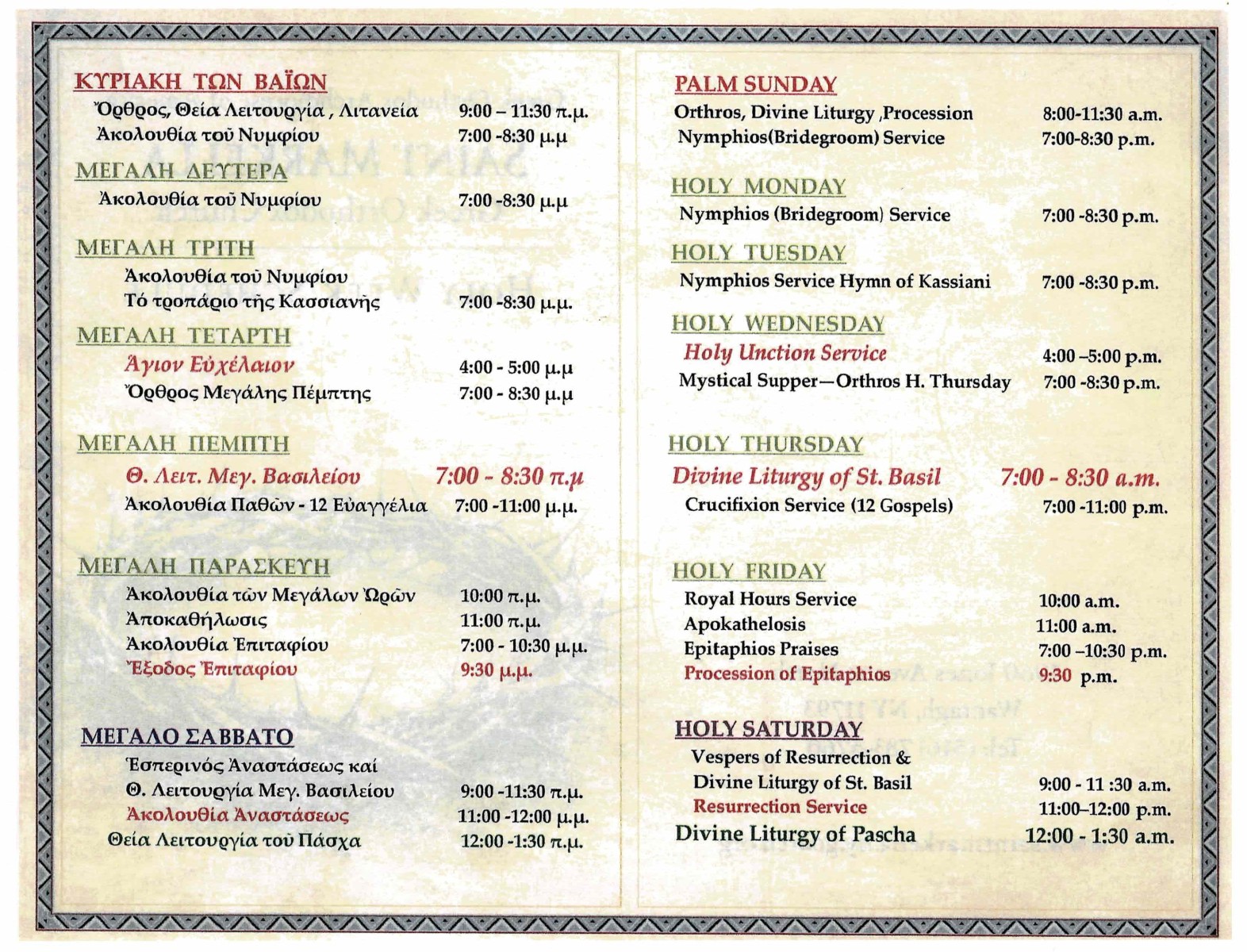 Sundays: Orthros: 9 AM; Divine Liturgy: 10:15 AM - 11:30 AM